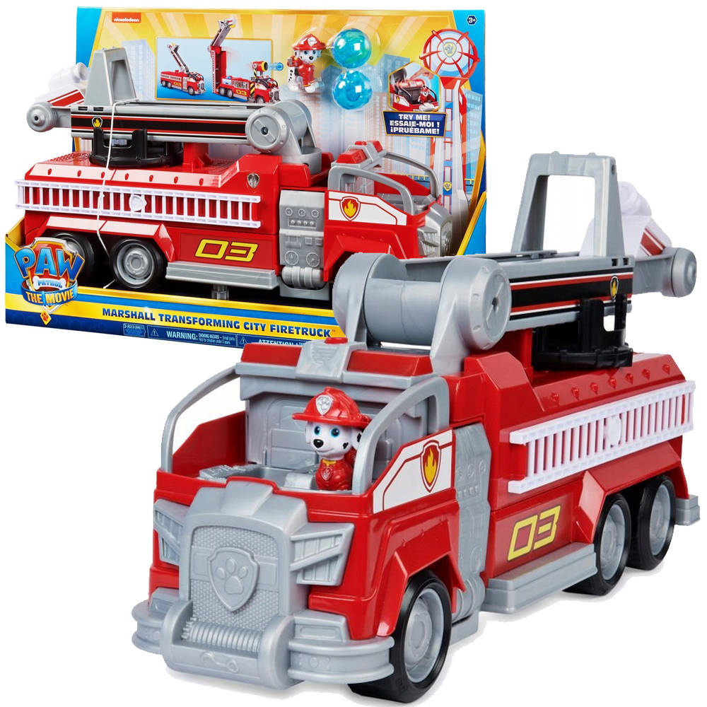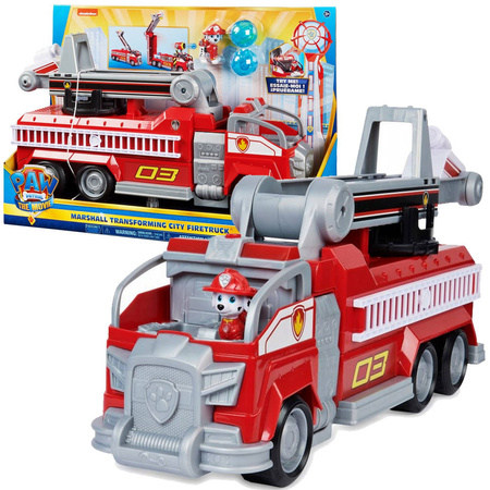 Zostań strażakiem jak Marshall! Teraz możesz! Niesamowity wóz strażacki jest gotowy do misji ratunkowej. Wyposażony w dwie wyjmowane drabiny, z otwieranym dachem, wysuwaną , obrotową drabiną, która pozwoli Ci sięgnąć najwyższej kondygnacji budynku. Naciskając przycisk aktywujesz wyrzutnię pocisków (dwa pociski znajdują się w zestawie). Pędząc na misje koniecznie uruchom sygnały dźwiękowe i świetlne!MARSHALL I JEGO WÓZ STRAŻACKI GOTOWE NA MISJĘ RATUNKOWĄ!