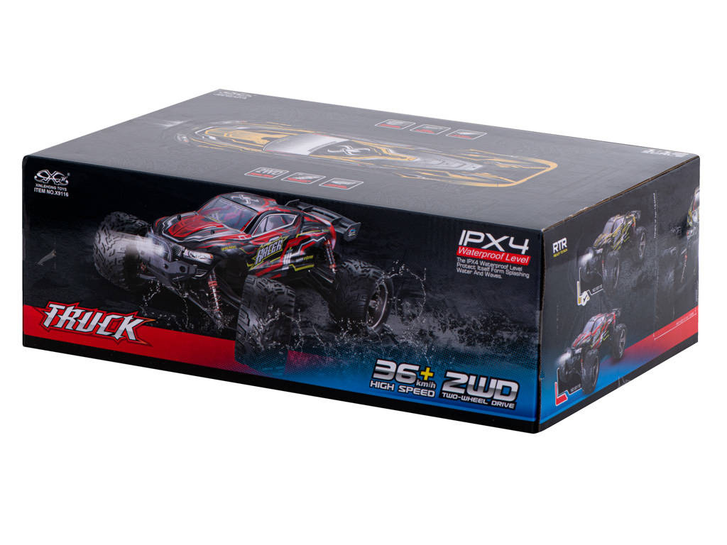 Monster Truck to świetna zabawka nie tylko dla najmłodszych. Posiada duże gumowe opony oraz napęd na dwa koła. Jest kosmicznie szybki, osiąga prędkość do nawet 36 km/h. Auto zostało wykonane z dbałością o szczegóły. Posiada nowoczesny wygląd, który na pewno przypadnie do gustu młodemu kierowcy. Długa zabawa zdalnym samochodem terenowym gwarantowana.- Prędkość: 36 km/h