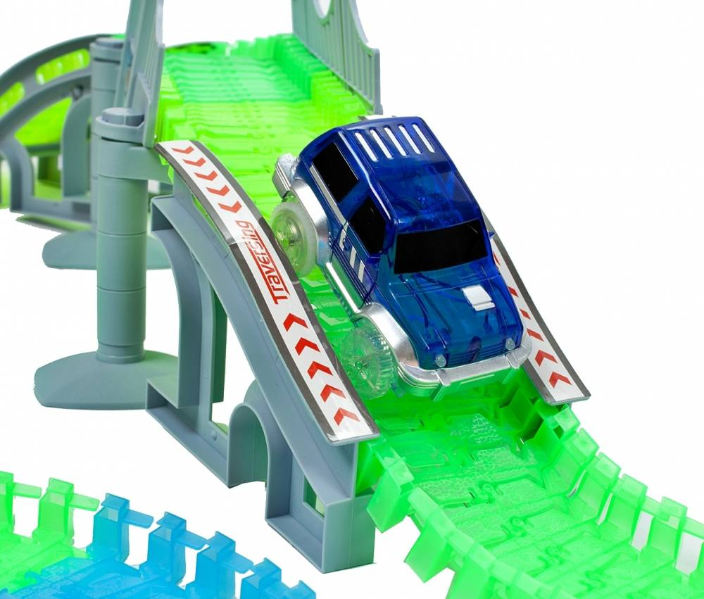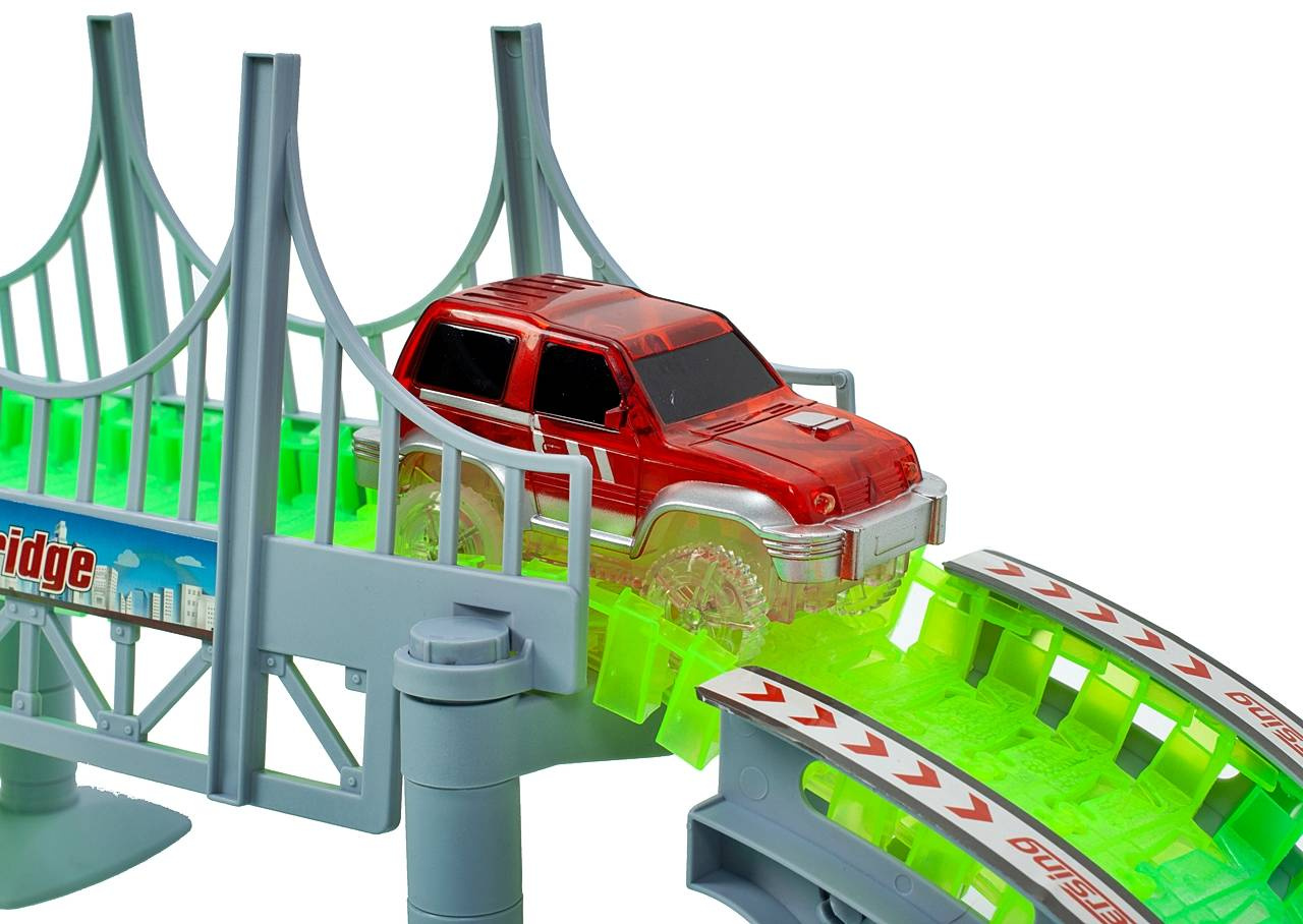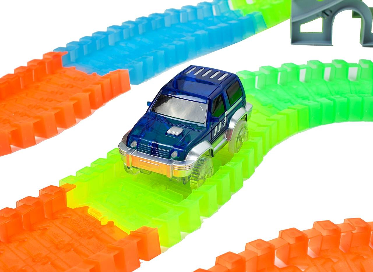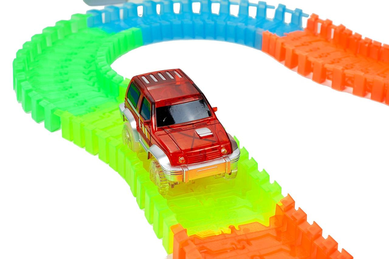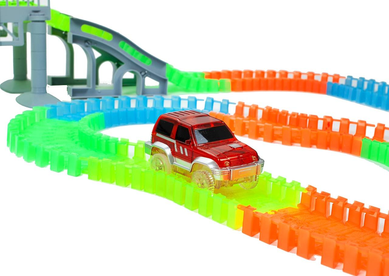 Niezwykły tor samochodowy, który potrafi można układać wg swojego uznania! Ten tor to prawdziwa gratka dla każdego małego i dużego fana wyścigów samochodowych. Do zestawu dołączono 2 samochodziki, które świecą po umieszczeniu w nim baterii. Dzięki swoim elastycznym elementom, możesz układać tor według swojego uznania. Nie musisz się obawiać o wypadanie pojazdów z toru, ponieważ samochodzik ma bardzo dobrą przyczepność. Dodatkowo, tor jest bardzo łatwy w czyszczeniu oraz nie zajmuje dużo miejsca po złożeniu. Przekonaj się sam jak zaskakujący jest ten tor!W ZESTAWIE:
