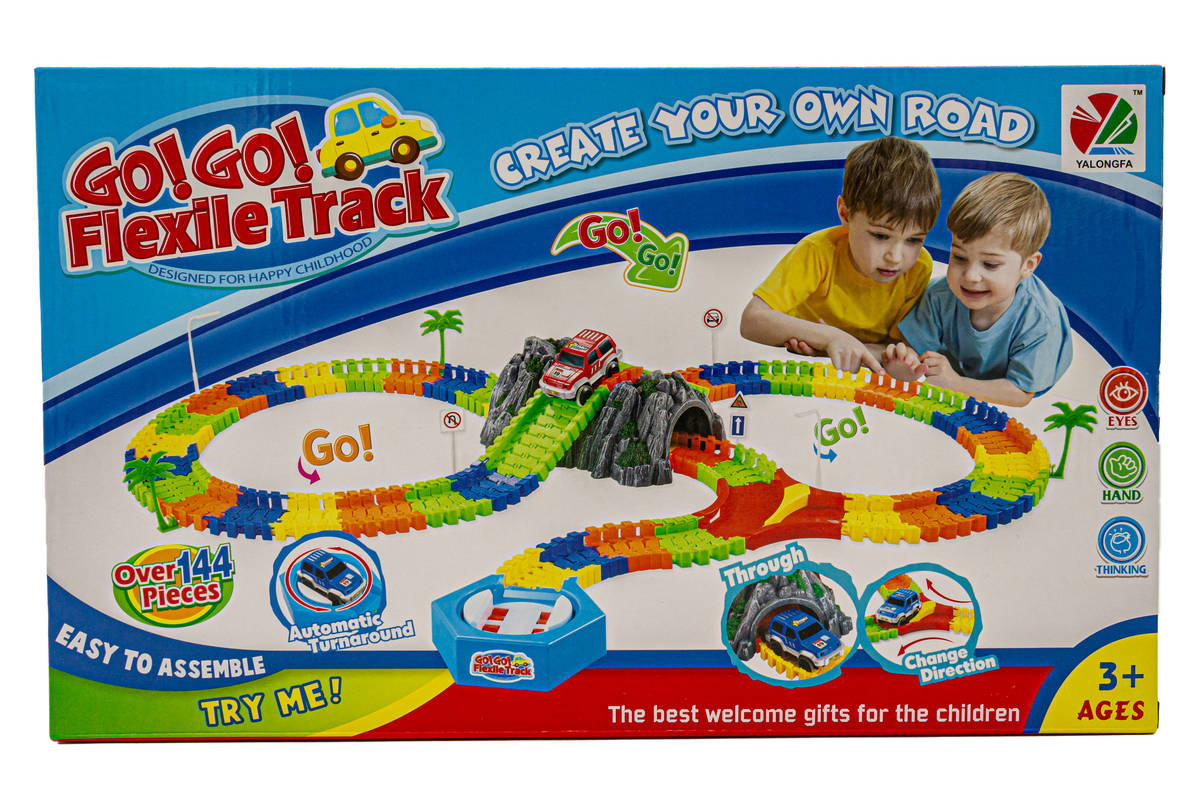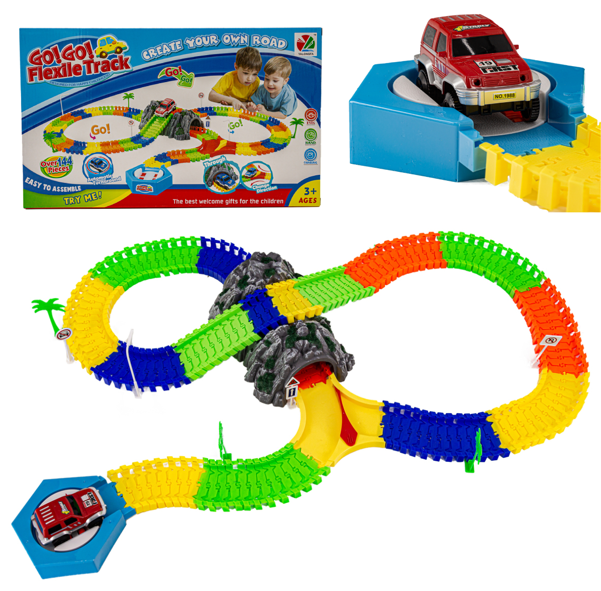 Tor samochodowy wyścigowy dla dzieci Autko Flexile Track 144 elementów