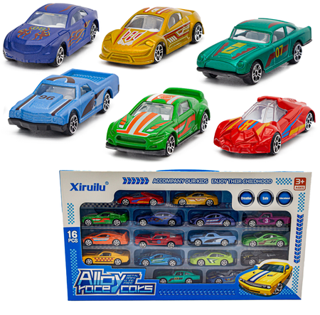 Zestaw 16 pojazdów do zabawy dla dzieci z kolorowymi autkami wyścigowymi dostarczy Twoim maluchom mnóstwo świetnej zabawy na długie godziny!16 SAMOCHODÓW RESORAKÓW DLA DZIECI