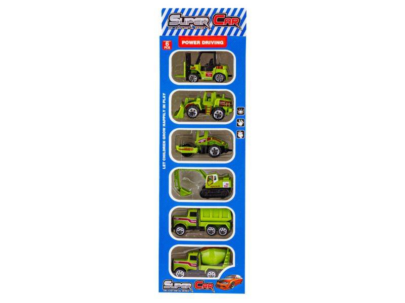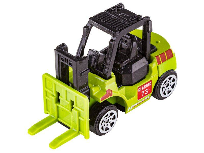 W przedstawionym zestawie, każdy znajdzie coś dla siebie. Do wyboru są pojazdy, tj.: wywrotka, koparka, spychacz, wózek, walec oraz betoniarka. Każda maszyna budowlana posiada ruchome elementy, które zachęcą dziecko do kreatywnej zabawy. Pozwala ona również na ćwiczenie koordynacji ręka-oko oraz wspiera rozwój wyobraźni. Mały kierowca może odgrywać przeróżne scenki, np. u mechanika, na parkingu lub popularne wyścigi.DANE TECHNICZNE