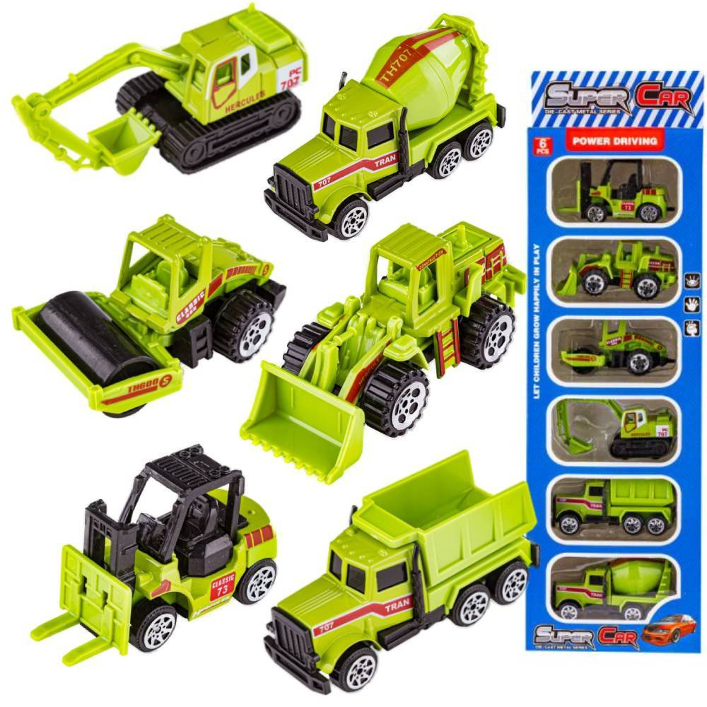 Zestaw resoraków pojazdy budowlane dla dzieci metalowe autka 6 sztuk