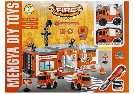 Zestaw Straż Pożarna Remiza strażacka do złożenia dla dzieci Samochody strażackie 59 elementów