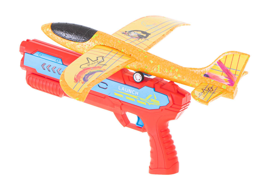 Wystrzelenie samolotów do lotu nigdy nie było tak proste i tak emocjonujące jak z tym zestawem. Pistolet do którego mocuje się szybko i sprawnie samolocik. Jednym naciśnięciem przycisku uwalnia się do lotu bolid lotniczy, który poleci daleko. Jak daleko, czy miał wpływ wiatr na lot, czy ustawienie trajektorii lotu było właściwe - to wszystko będzie można sprawdzać wielokrotnie. Niemalże bez końca. Dodatkowo, jeśli dzieci nie siedzą w domu przed ekranem telewizora czy komputera, to zestaw jest wprost idealną zabawką.CZERWONO-POMARAŃCZOWA WYRZUTNIA SAMOLOTU NA PREZENT