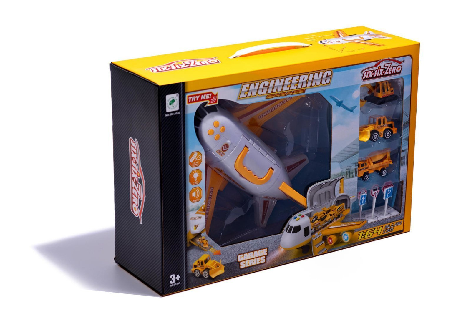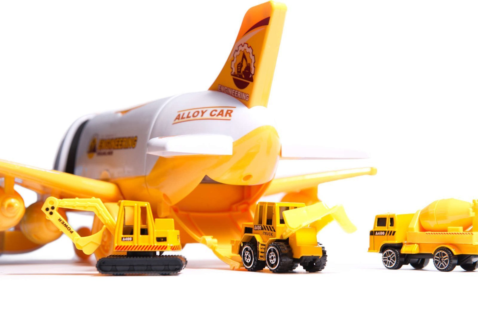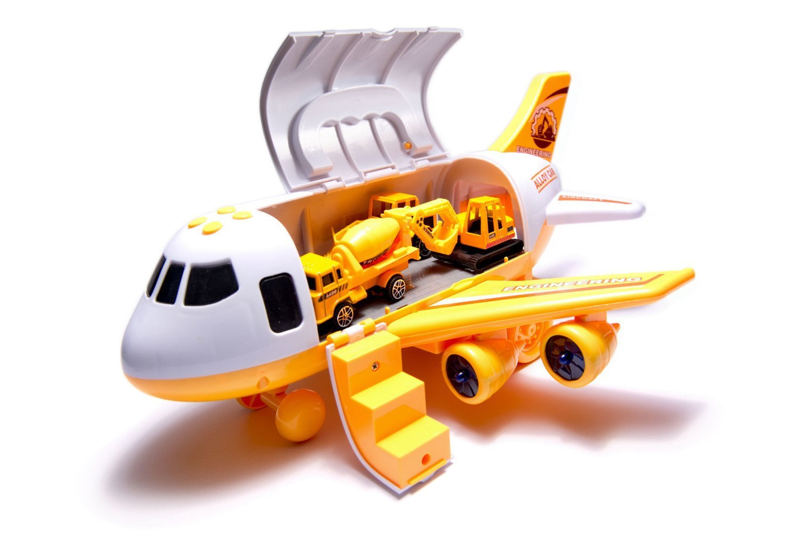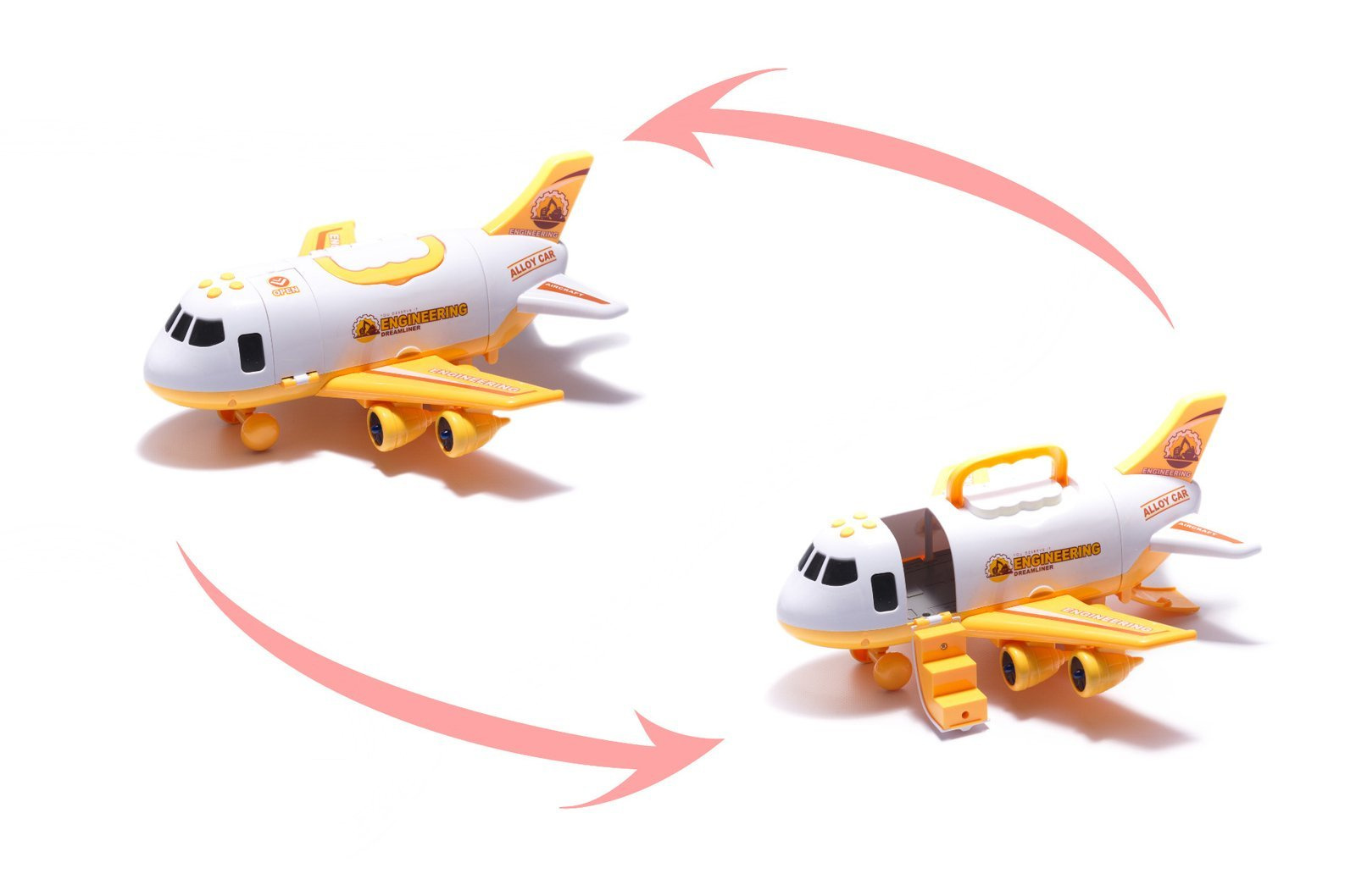 Duży otwierany samolot transporter z zestawem samochodów budowlanych dla dzieci