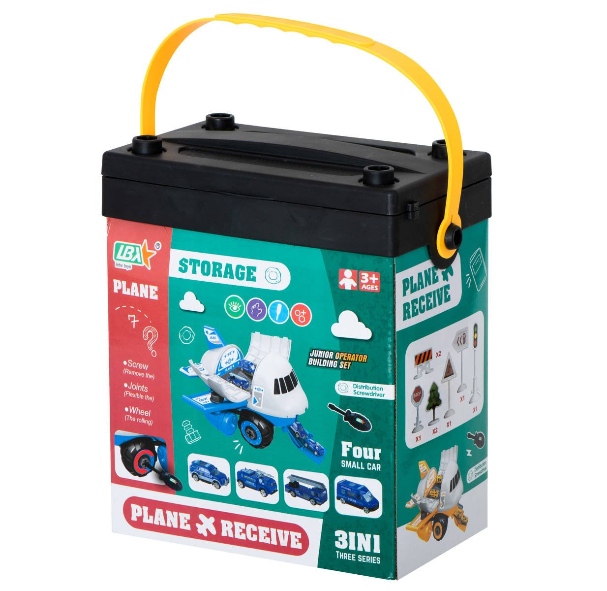 Duży samolot Transporter dla dzieci z samochodami i zestawem znaków drogowych DIY