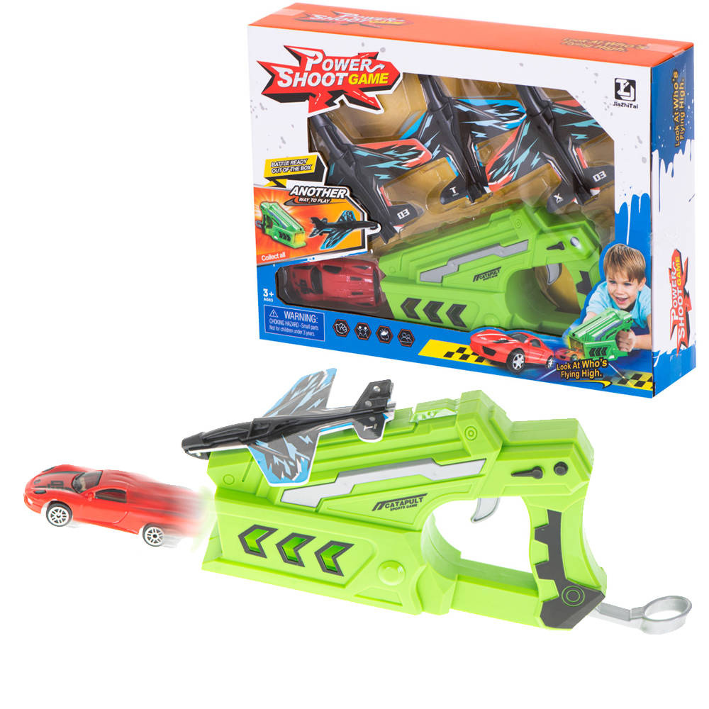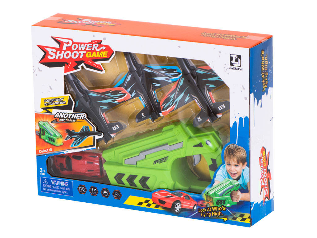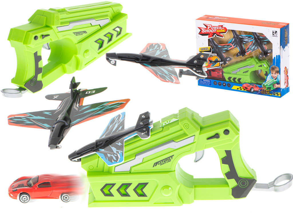 - Opakowanie zawiera Pistolet Wyrzutnię oraz 3 samoloty i 1 samochodzik
