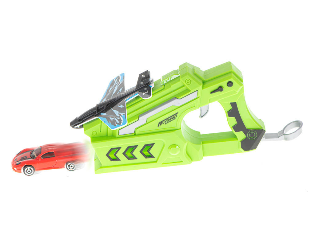 Jak zabawa w pilotów odrobinkę straci na atrakcyjności, w zestawie Wyrzutnia Pistolet, znajduje się również samochodzik. Tym razem wykorzystać trzeba powierzchnię poziomą ziemi, chodnika czy kostki. Samochody jednak nie poruszają się w powietrzu, a przynajmniej nie taka jest ich budowa i przeznaczenie. Jeden samochodzik, który również można wykorzystać do zawodów. Komu uda się pokonać większą odległość, po wystrzeleniu. Przednia, wesoła zabawa, która właściwie nigdy się nie kończy.Produkt w kartonowym opakowaniu, nie wymaga użycia baterii.