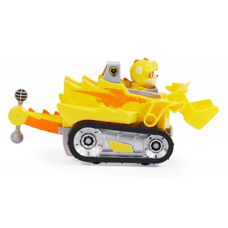 Żółty pojazd Rubble już się zbliża czyli czas na kolejną misję ratunkową. Tym razem odważne pieski trafiły do krainy smoków w której bronią swoich przyjaciół przed niebezpieczeństwami. Tam gdzie potrzebny ciężki sprzęt zjawia się Rubble.Super pojazd na gąsienicach da sobie radę w każdym terenie. Wytrzymała łyżka spycharki odgarnie każdą przeszkodę z drogi. Odkryj ukryte możliwości pojazdu i baw się w najlepsze.