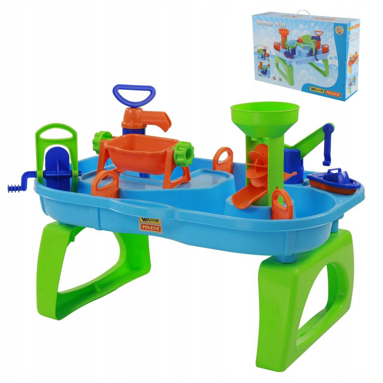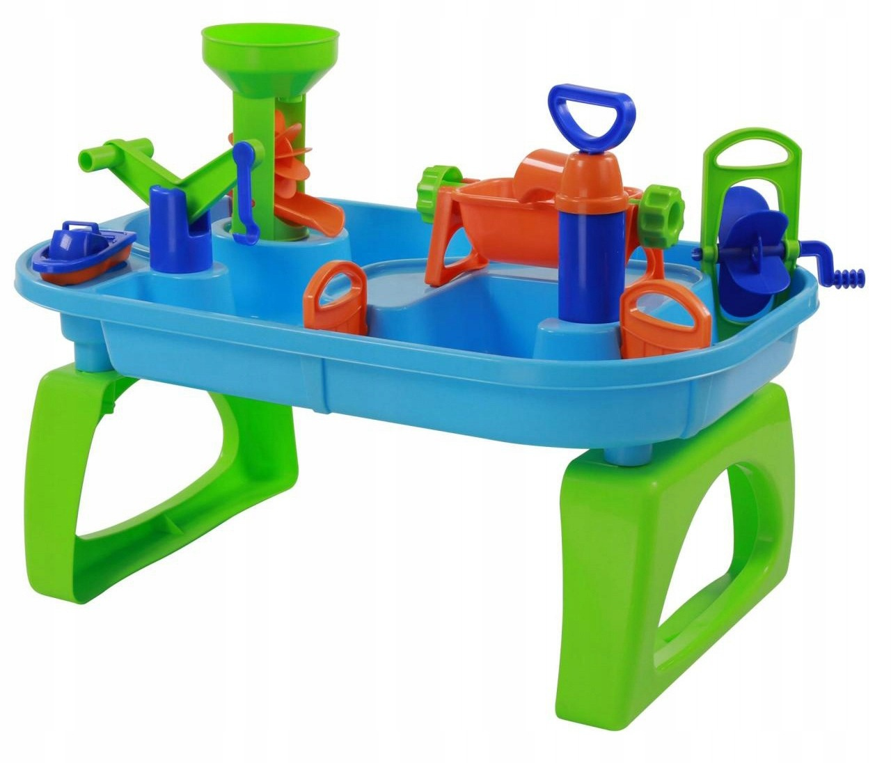 - Zestaw do kąpieli i do piasku dla dzieci, stolik wodny z zabawkami. Zabawka wspiera poprawny rozwój Twojego dziecka, pobudza jego wyobraźnię oraz logiczne myślenie. Dla dzieci od 12 miesiąca życia.