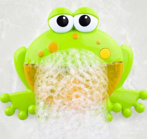 - Zabawka zagwarantuje wspaniałą kąpiel z dużą ilością piany, baniek oraz z melodyjkami. Uśmiechnięta żaba z pewnością przyciągnie uwagę dziecka. Zabawka działa na baterię. Nie jest wodoodporna.