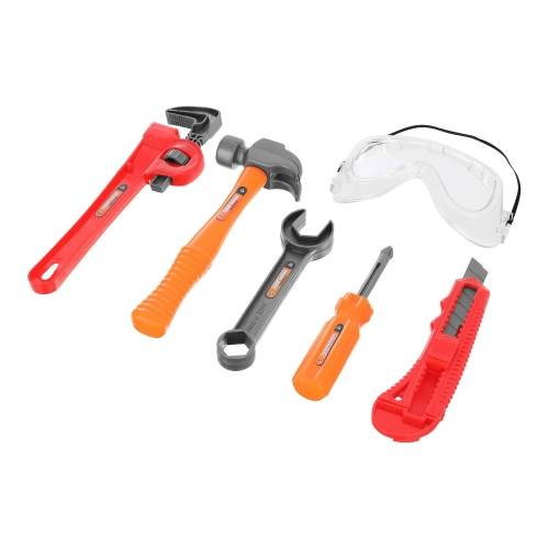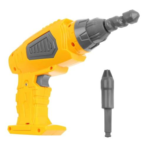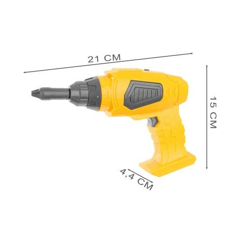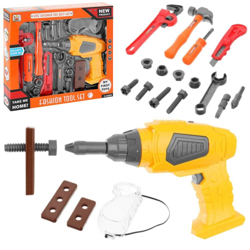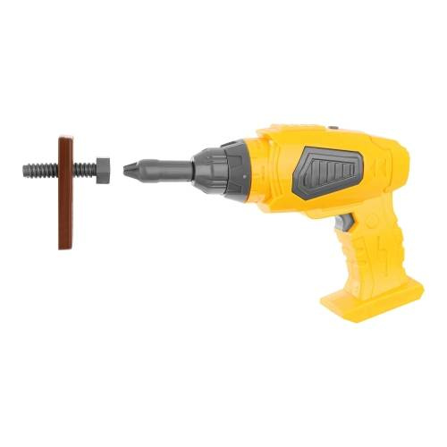 Zapewnij dziecku sporo frajdy podczas zabawy! Zabawki zostały odwzorowana na prawdziwe narzędzia, używane w codzienności, o czym przypominać będzie chociażby ich kolor. Duża zaletą wiertarki jest obrotowe wiertło. Wystarczy wcisnąć wiertło i nacisnąć przycisk na rączce narzędzia. W zestawie znajdziemy również okularu ochronne oraz podstawowe narzędzia małego inżyniera, m.in. śrubokręt, młotek oraz klucz francuski. Zestaw naprawczy został wykonany z bezpiecznych materiałów.DANE TECHNICZNE