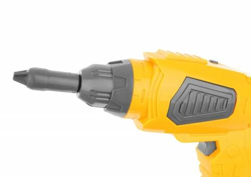 - Duży zestaw naprawczy idealny dla małej złotej rączki. W zestawie znajduje się wiertarka z obrotowym wiertłem. Duża ilość akcesoriów gwarantuje długą zabawę. Dla dzieci powyżej 3 roku życia.