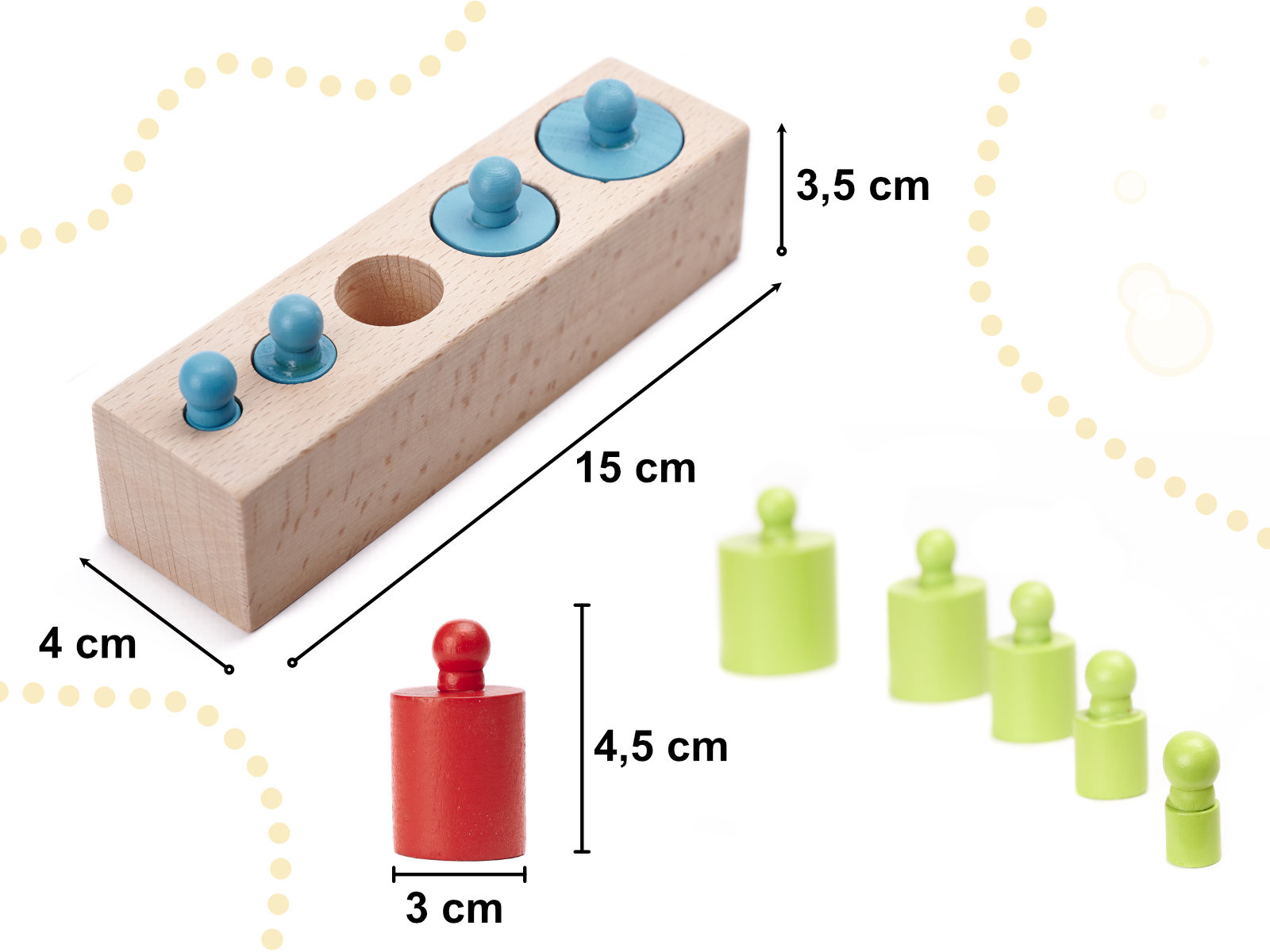• Drewniany zestaw kolorowych odważników - cylindrów dla dzieci będzie nie lada gratką dla dzieciaków ciekawych świata kolorów i kształtów. Zabawka kształtuje wyobraźnię Twojego dziecka oraz wywiera wpływ na jego zmysły.