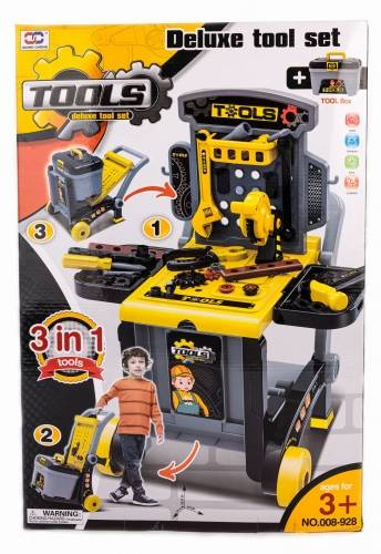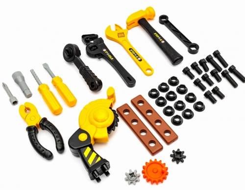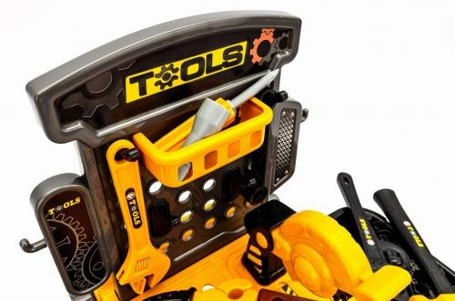 - Duży zestaw małego majsterkowicza posiada wiele podstawowych narzędzi. Bawiąc się w warsztat dziecko rozwija zdolności manualne oraz kreatywność.