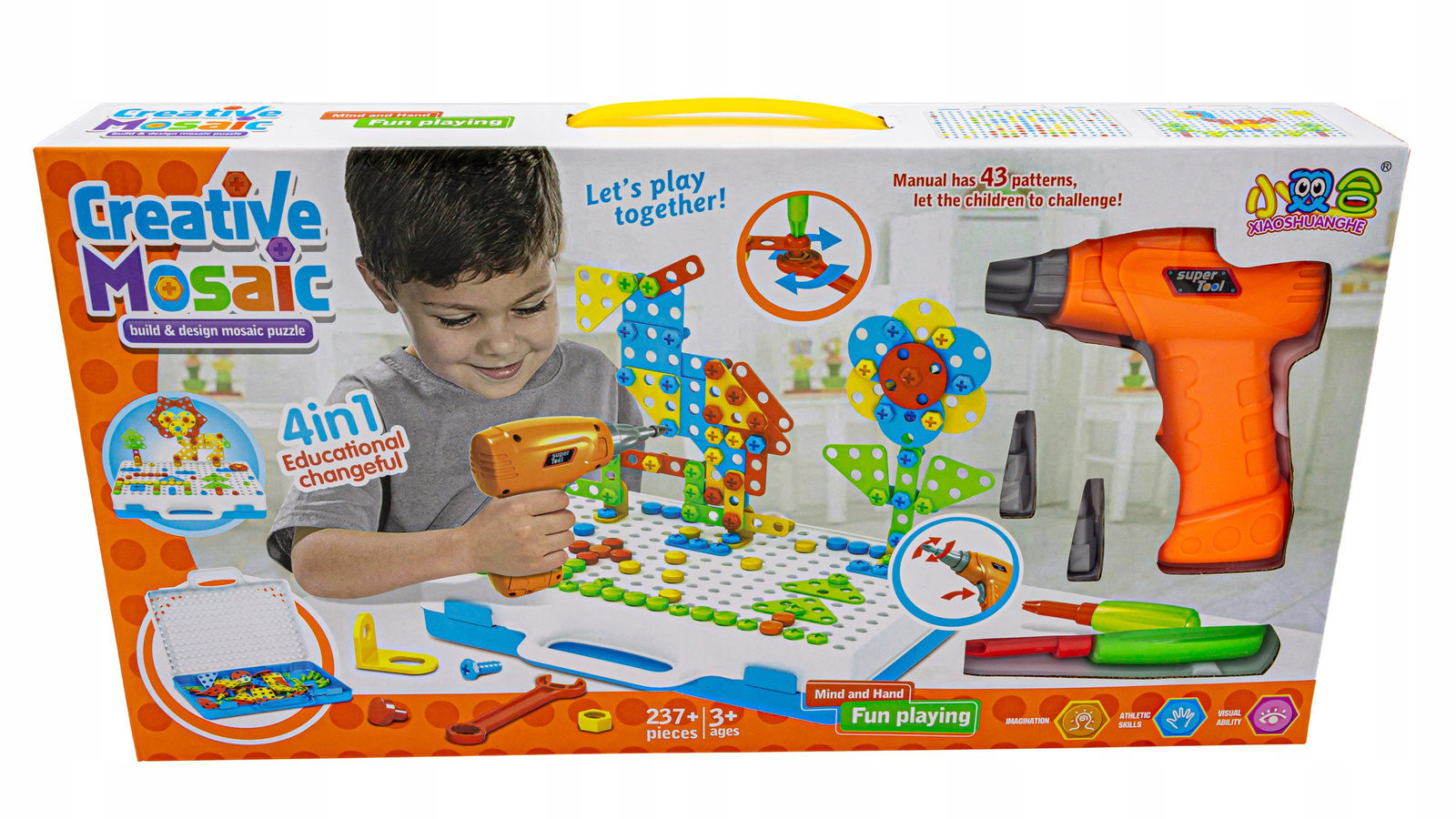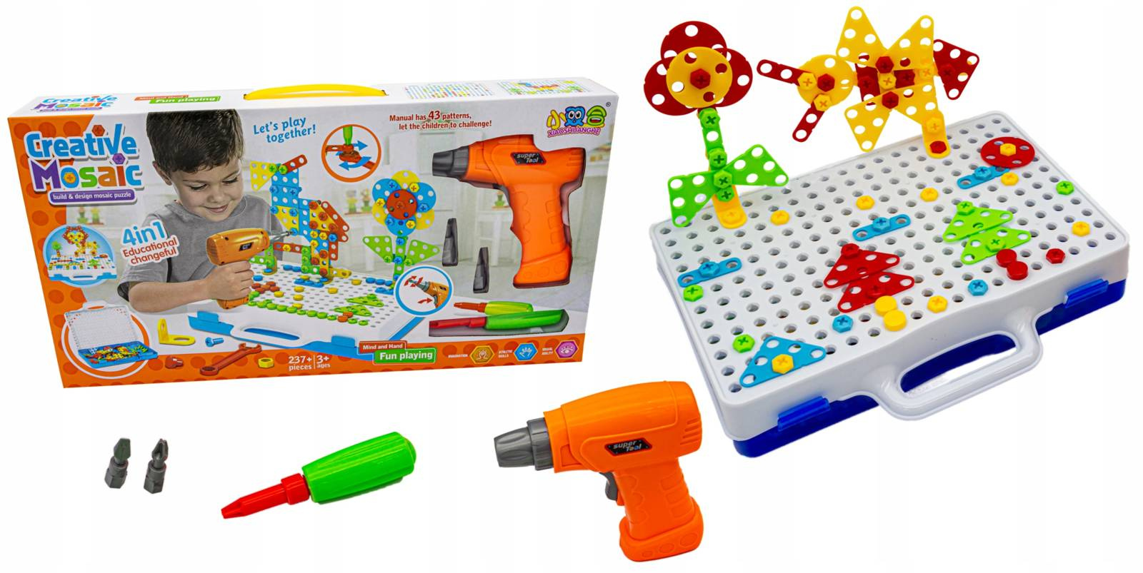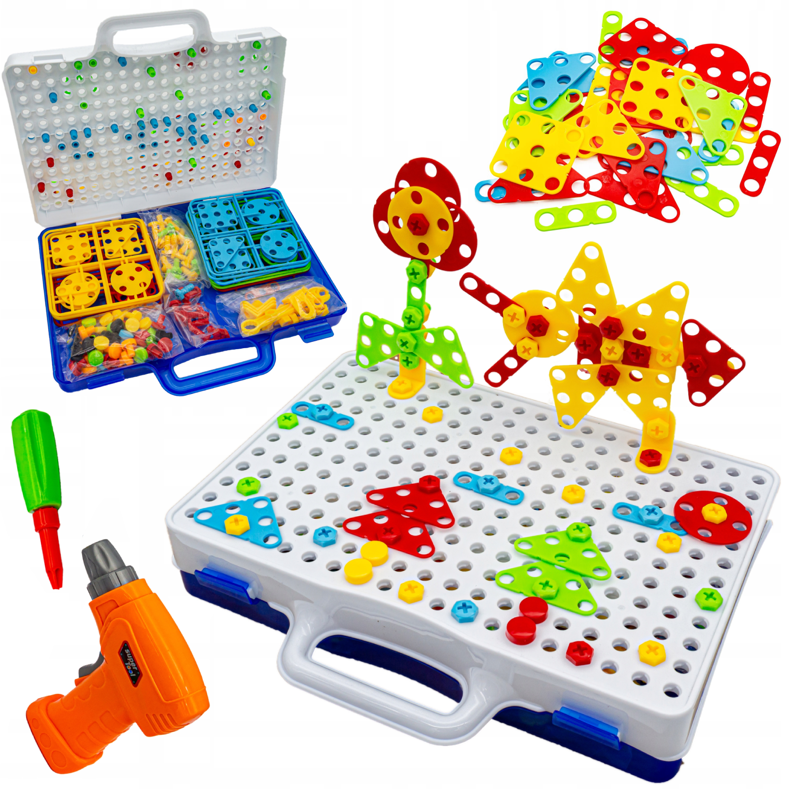 Zestaw edukacyjny konstrukcyjny dla dzieci Klocki do układania Wkrętarka Układanka Kreatywna mozaika w walizce