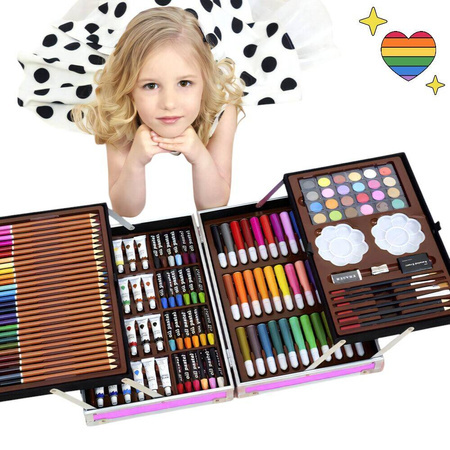 - Kreatywny zestaw plastyczny w walizce dla dziecka! Zawiera aż 144 elementy, w tym: kredki, pisaki, pastele oraz farby. Walizka posiada różowy kolor oraz wzór z jednorożcem. Zestaw artystyczny pozwoli przelać pomysły z wyobraźni na papier!