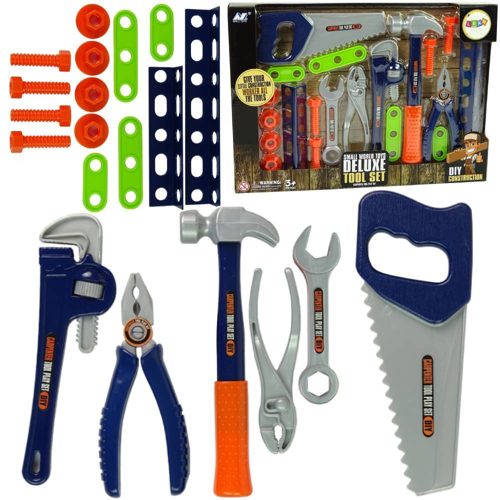 Zestaw posiada niezbędne narzędzia do wykonania podstawowych prac naprawczych w prawdziwym życiu, m.in.: młotek, klucze oraz piłę. Narzędzia posiadają specjalnie wyprofilowane uchwyty, dzięki czemu bez problemu mieszczą się w małych rączkach. Dzięki nim można stworzyć niesamowite, domowe konstrukcje. Zestaw narzędzi został wykonane z bezpiecznego plastiku, dlatego jest bezpieczny w użytkowaniu przez dzieci. Długa zabawa przy majsterkowaniu gwarantowana!DANE TECHNICZNE