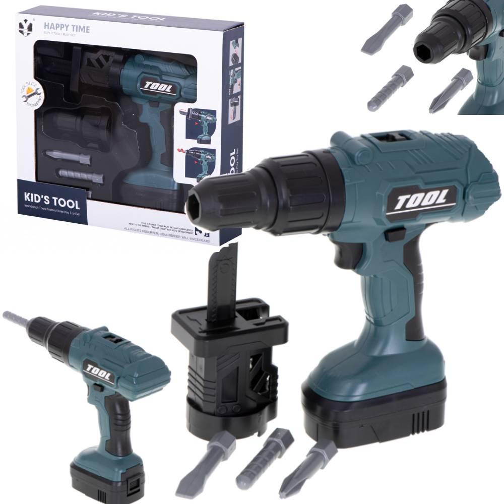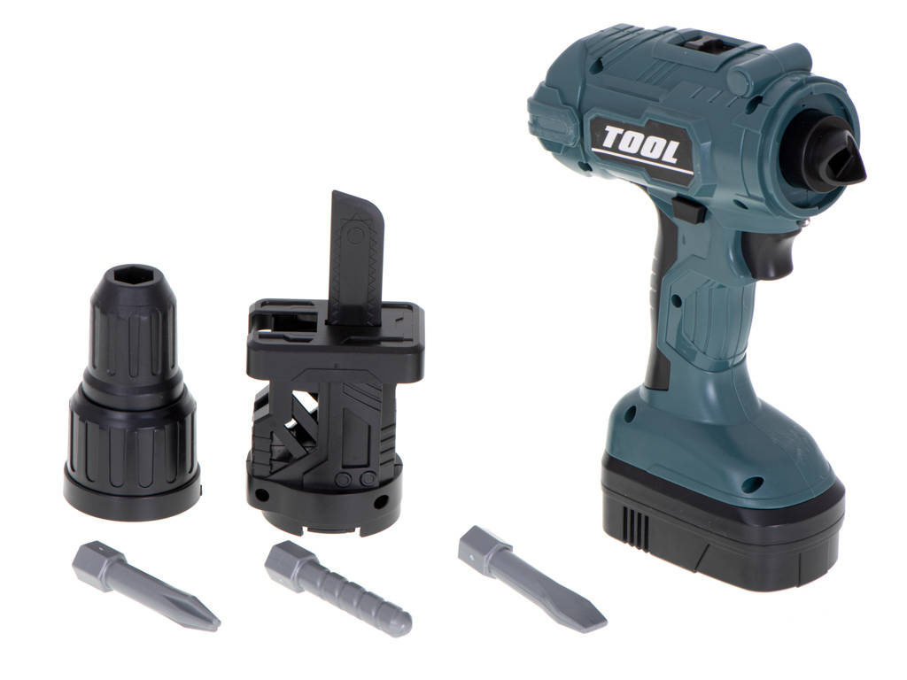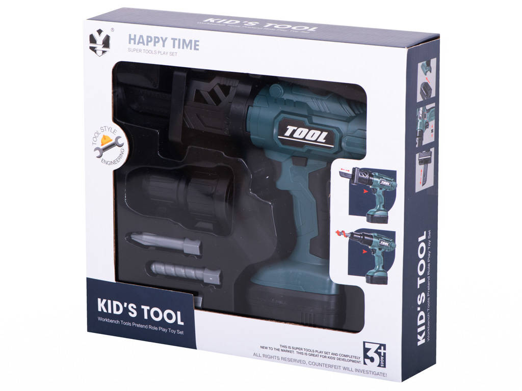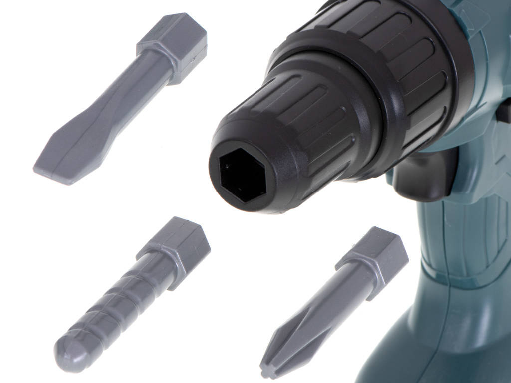 Głównym atutem narzędzia jest możliwość wkręcenia śruby lub użycia wiertła. W zestawie znajdują się 4 różne końcówki. Używając wiertarki na baterię maluch poczuje się jak prawdziwy inżynier. Zabawka została odwzorowana na prawdziwe narzędzie, o czym przypominać będzie chociażby jej kolor. Wykonana z bezpiecznych materiałów, jest bezpieczna w użytkowaniu.DANE TECHNICZNE