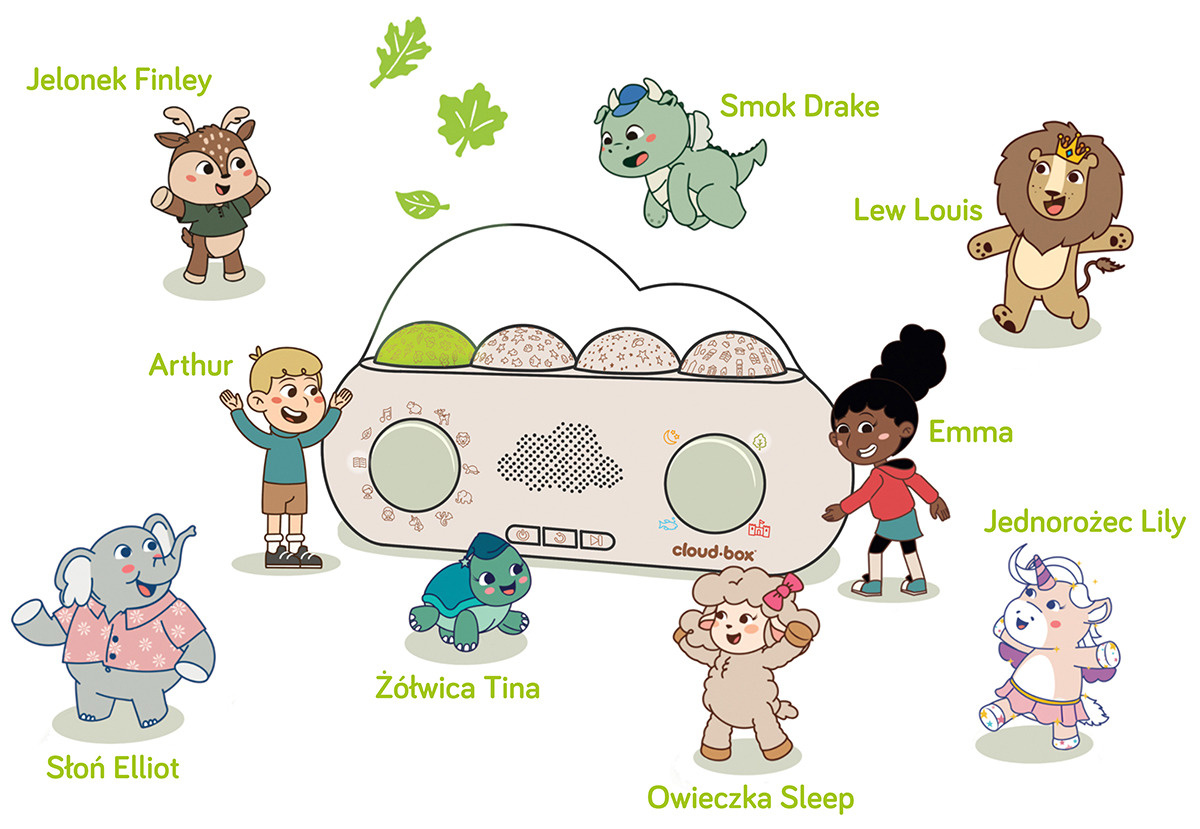 Funkcja nagrywania pozwala na stworzenie przez rodziców, czy też dziadków 8 własnych opowieści. Dzięki temu bajka jest jeszcze bardziej wyjątkowa. Ponadto, maluchowi może towarzyszyć podczas relaksu lub snu 8 kojących melodii, 8 białych szumów, a także projekcje świetlne. Historie zawarte w CloudBox są w dwóch językach: polskim oraz angielskim. Zabawka została stworzona z myślą o dzieciach w przedziale wiekowym 0-8 lat i jest doskonałym pomysłem na prezent.