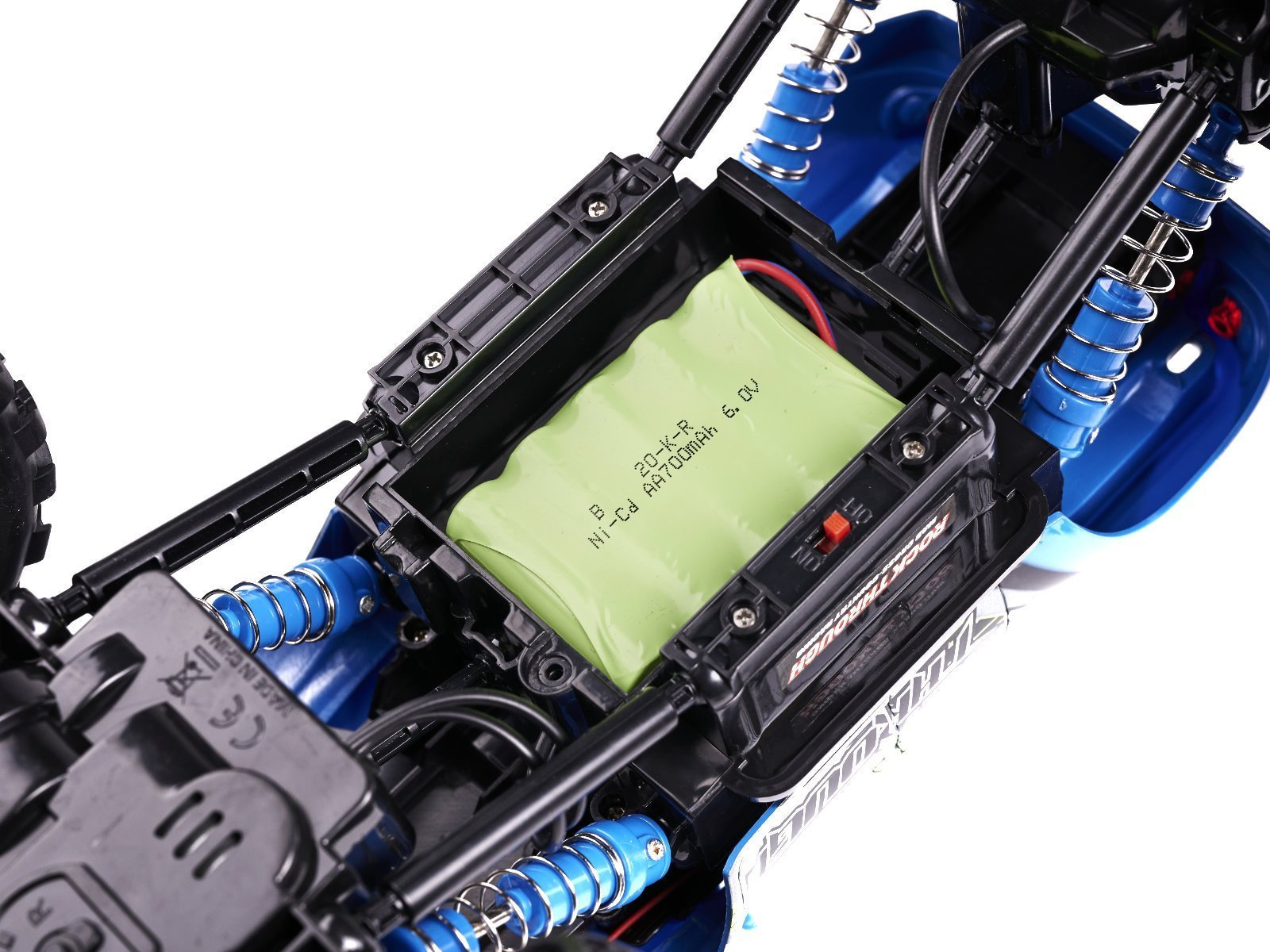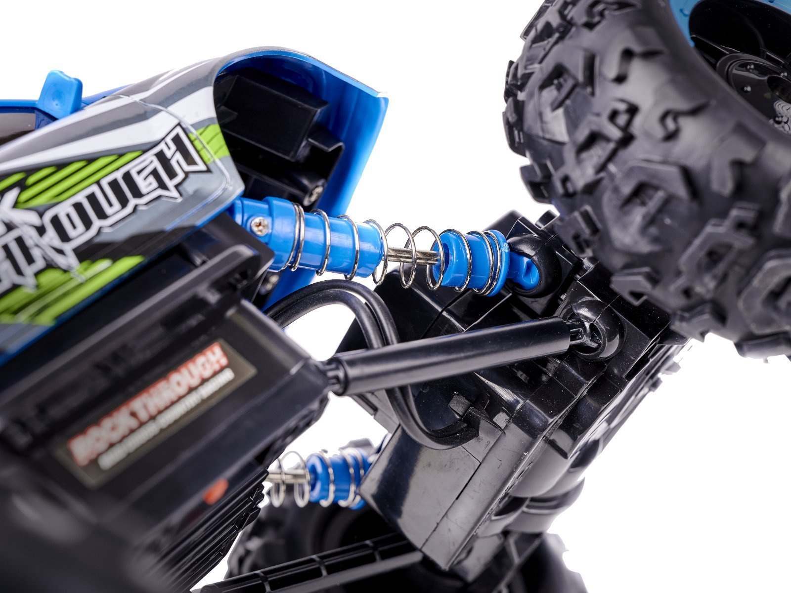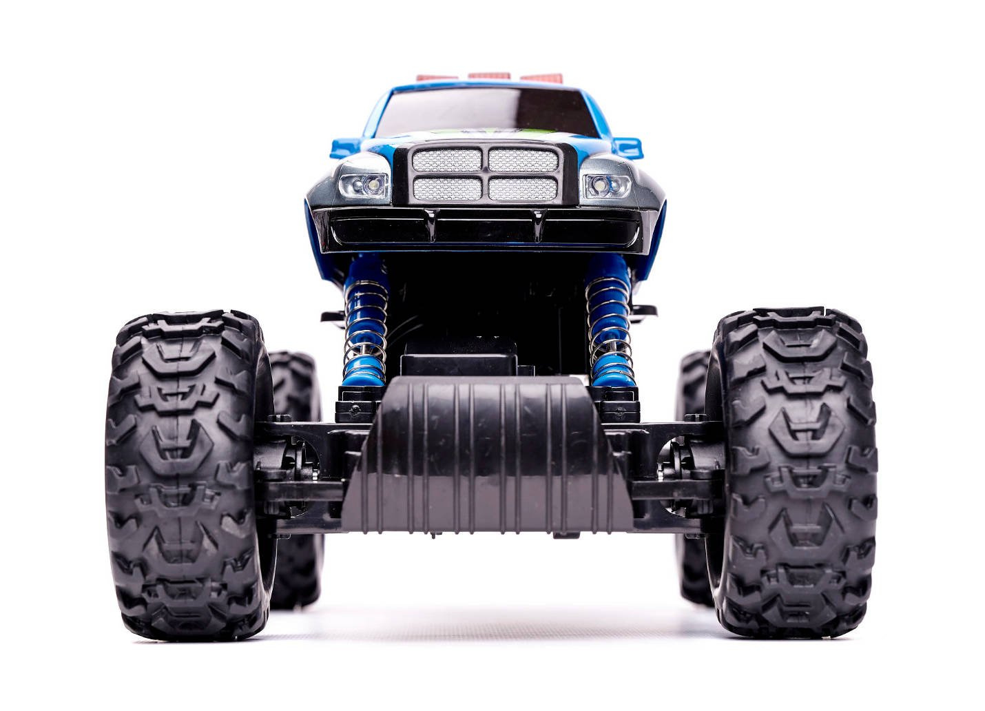 - Niebieski, zdalnie sterowany Rock Crawler to prawdziwy pogromca terenu! Dzięki swoim dużym wymiarom, jest w stanie pokonać każdą przeszkodę stojącą mu na drodze. Zabawka przeznaczona dla dzieci od lat 8.