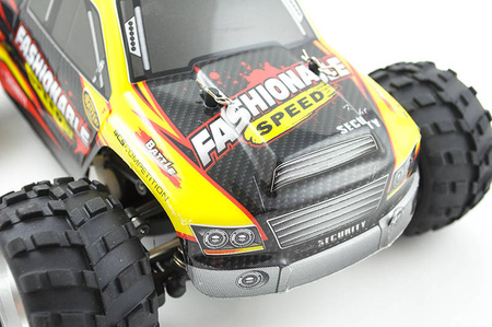 Poczuj wiatr we włosach i przenieś się do świata szybkiej jazdy! Duży samochód terenowy na pilota Monster Truck w kolorze żółtym zachwyci każdego małego entuzjastę motoryzacji. Grube, wzmocnione koła, cztery niezależne amortyzatory i napęd na wszystkie 4 koła sprawiają, że samochód nie ma sobie równych w szybkiej jeździe po trudnym terenie, gdyż auto może rozpędzić się nawet do 35 km/h. Kolorowe umaszczenie z agresywnymi dodatkami dodają mu charakteru, a duże gabaryty pozwalają mu się wyróżnić w tłumie. Przekonaj się sam na własnej skórze co oznacza jazda bez trzymanki!DANE TECHNICZNE: