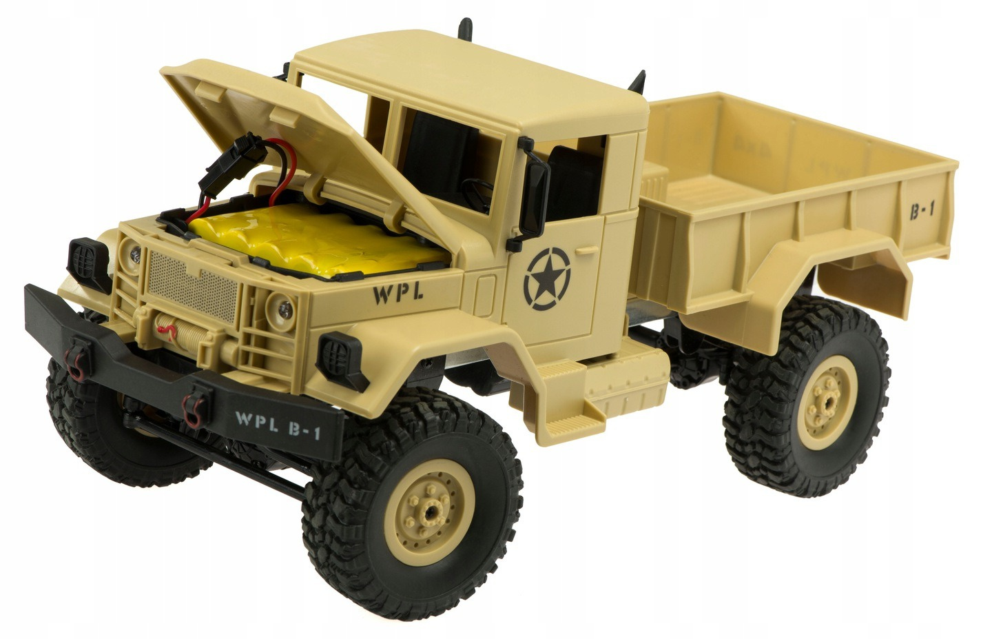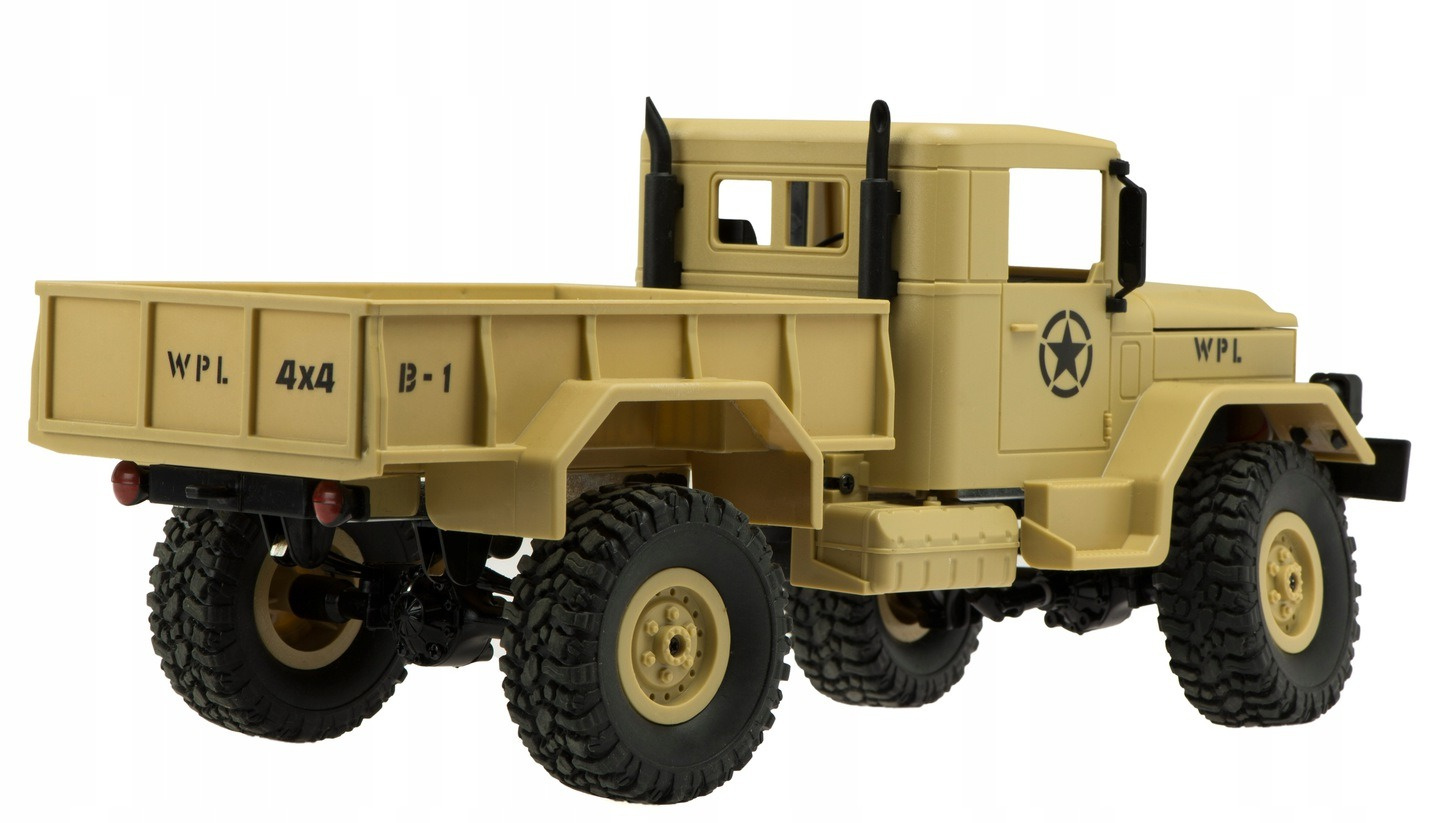 • Zdalnie sterowany ciężarowy samochód wojskowy w kolorze pustynnym na pewno przypadnie do gustu wszystkim małym fanom czterech kółek. Zabawka wspiera prawidłowy rozwój Twojego dziecka oraz pobudza jego wyobraźnię. Dla dzieci od lat 3.