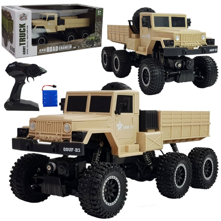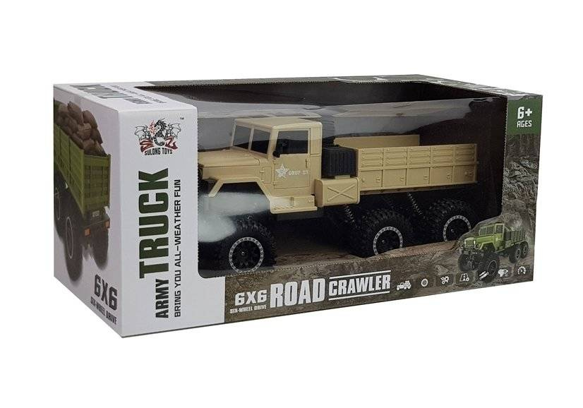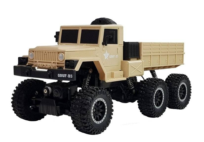- Zdalnie sterowany ciężarowy samochód wojskowy w kolorze pustynnym na pewno przypadnie do gustu wszystkim małym fanom czterech kółek. Zabawka wspiera prawidłowy rozwój Twojego dziecka oraz pobudza jego wyobraźnię. Dla dzieci od lat 6.