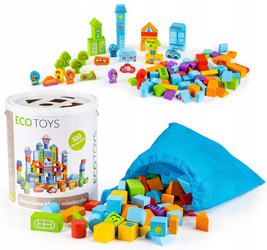 Drewniane klocki edukacyjne dla dzieci miasto sorter zestaw 100 elementów Ecotoys SR19001