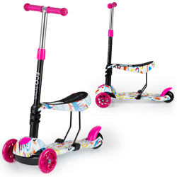 Hulajnoga z siedziskiem dla dzieci trójkołowa jeździk 3 koła kauczuk LED Ecotoys BW-203 GRAFFITI RED