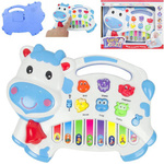 Interaktywne organki pianinko dla dziecka biało-niebieska krówka odgłosy zwierząt