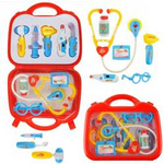Zestaw małego lekarza doktora dla dzieci wózek akcesoria przyrządy medyczne EKG czerwono-niebieski